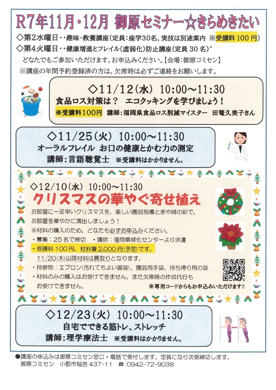 【募集】御原セミナー☆きらめきたい 11月.12月ご案内