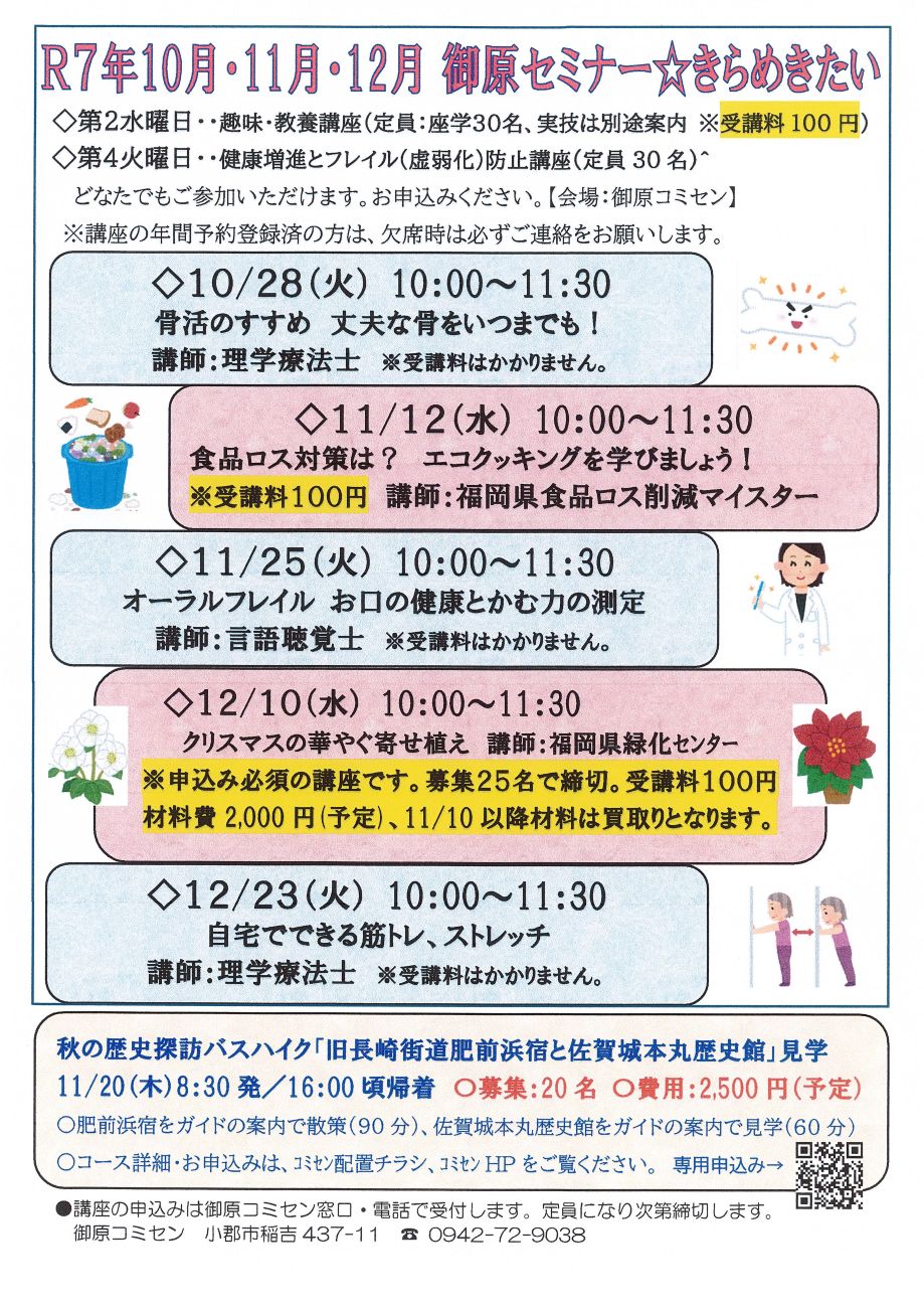 【募集】御原セミナー☆きらめきたい 10月.11月.12月ご案内